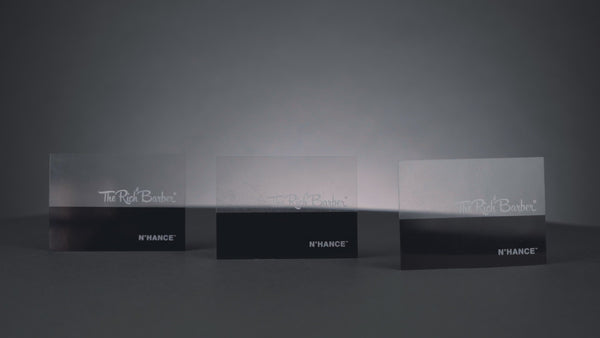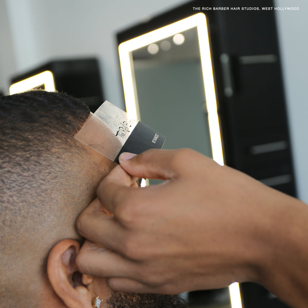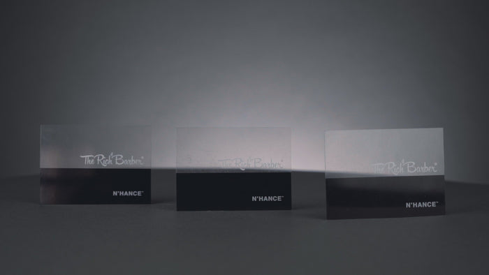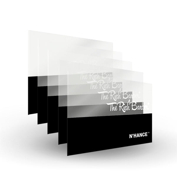 The ultimate shaping tool for hair and beards. The Rich Barber N'Hance Application cards were designed to simplify the designer's experience when applying the N'Hance Hair Fibers. Simply bend the application card in the desired shape around the beard line (or hair line). Tilt card, while holding card against the face or head when applying the fibers or hold spray. Do not apply with pressure. Use card only when aligning the edges, filling in or protecting the face and eyes. Clean after each use.